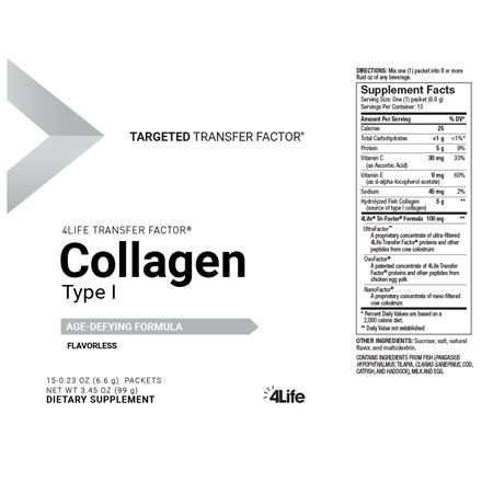 Do you want a convenient way to get your daily collagen? Try 4Life Transfer Factor Collagen Type I. This product supports skin elasticity and repair, muscles, healthy nails and hair, antioxidant levels, and the immune system. Plus, it’s flavorless, so you can add it to any food or beverage.*